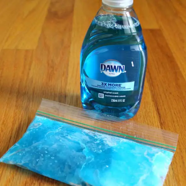 To make a moldable ice pack that doesn’t completely freeze, mix together equal parts dish soap and water. Put the solution in a Ziploc bag and stick it in the freezer.