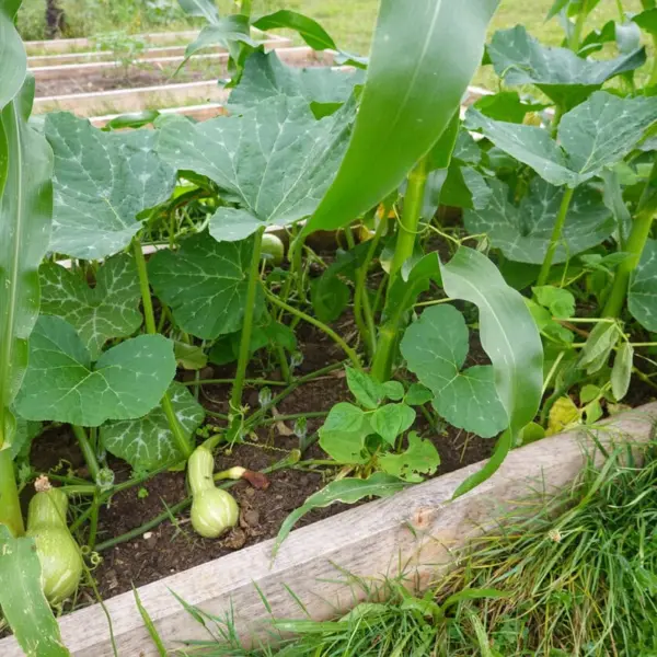 - Scatter winter squash, cucumbers, or melons throughout the gaps between those corn rows.