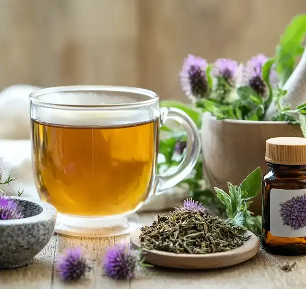 - 1–2 teaspoons of dried Bull Thistle leaves1 cup of hot water
