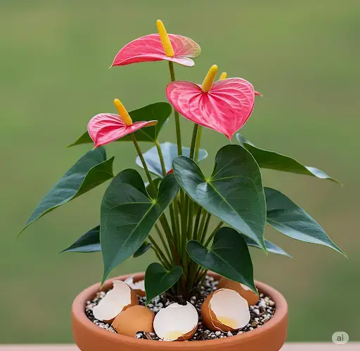 Eggshells can help neutralize overly acidic soil, bringing it closer to the slightly acidic-to-neutral range that anthuriums prefer. - Natural Pest Deterrent