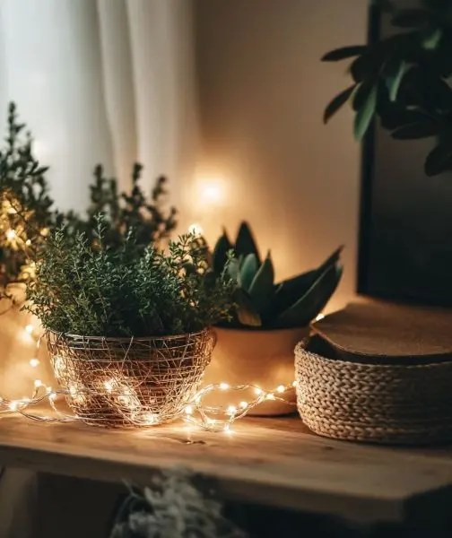 This DIY light fixture can be styled as a centerpiece in a living room or hung above a dining table for a rustic, bohemian vibe. Pair it with natural elements like wooden furniture, potted plants, and soft textiles to enhance its charm. The warm glow of the lights will complement neutral color palettes and can act as a focal point in minimalist or eclectic interiors.