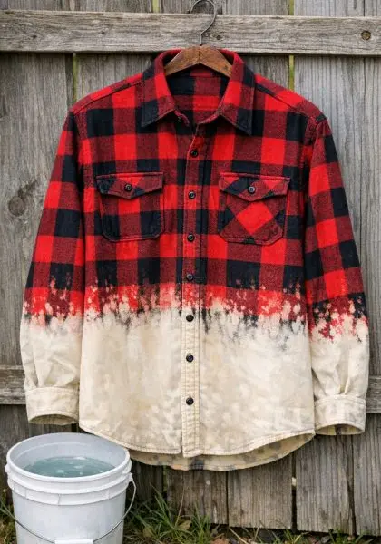 There are many variations you can try with this DIY project to make it your own. Experiment with different flannel colors, such as green and black or blue and black, to see how the bleach reacts with each hue. For a more dramatic effect, try using a stronger bleach solution or leaving the shirt in the bleach for a longer period. You can also create patterns by tying parts of the shirt with rubber bands before bleaching, similar to a tie-dye technique. Remember to always work in a well-ventilated area and test a small, inconspicuous part of the fabric first to avoid any unwanted results.