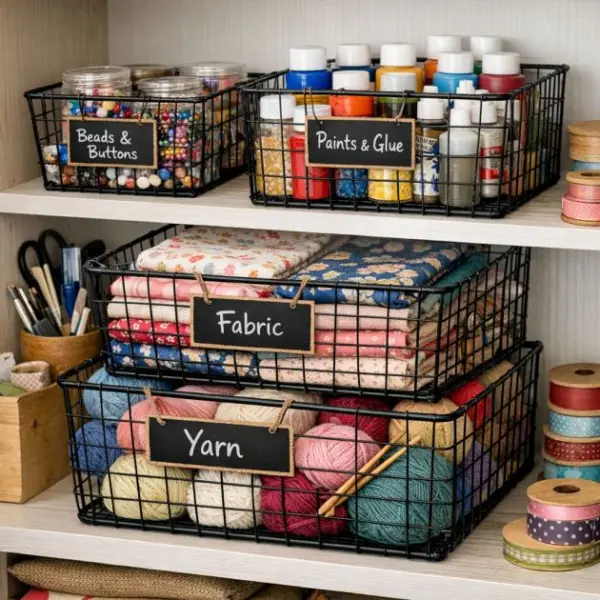 8. Repurpose Wire Baskets as Craft and Hobby Organizers